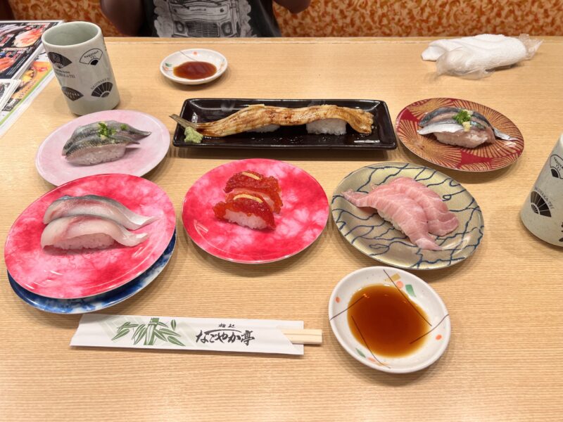 店内はカジュアルで入りやすく、家族連れでも一人旅でも気軽に立ち寄れるのがポイント。観光途中のランチや、ちょっと早めの夕食にも使いやすいお店です。お寿司だけでなく、茶碗蒸しや味噌汁などのサイドメニューも充実しており、しっかり食べたい方にもおすすめ。