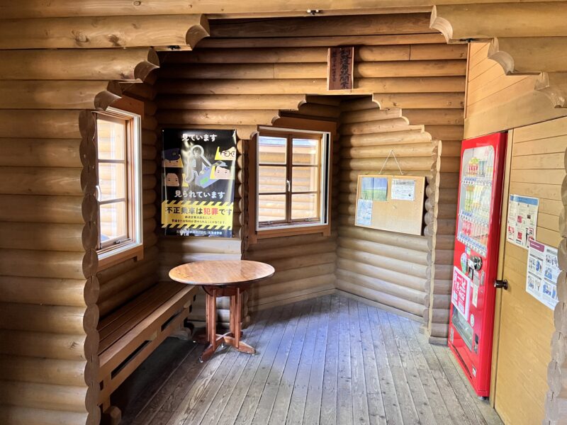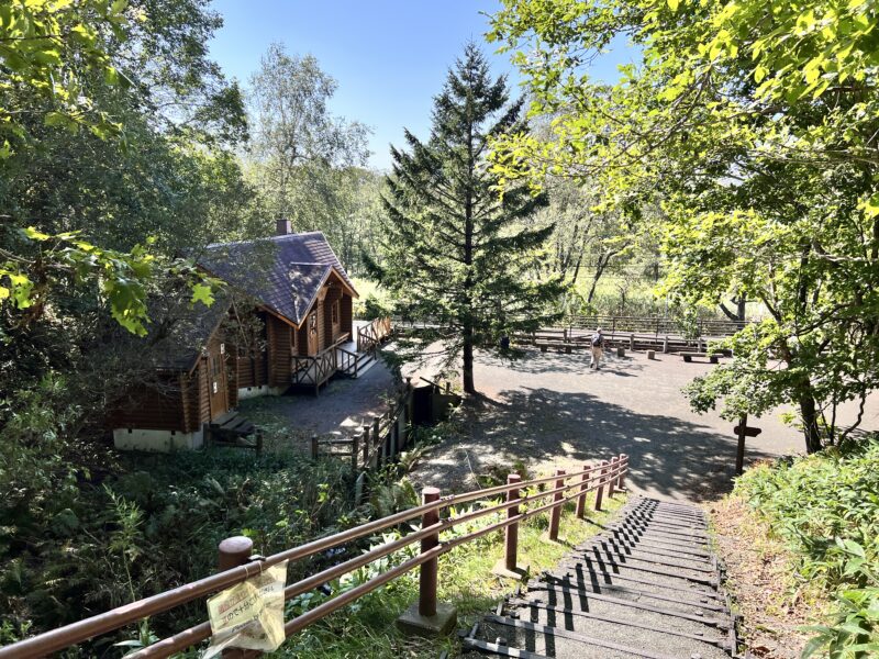 細岡駐車場、釧路湿原駅から歩いてくると、まずはこの釧路ビジターラウンジに到着します。ここにはソフトクリームやコーヒーなどの軽食が頂けます。またこの周辺ではトイレは釧路湿原駐車場かこのビジターラウンジにしかないので、細岡展望台に行く前に済ませておきましょう。