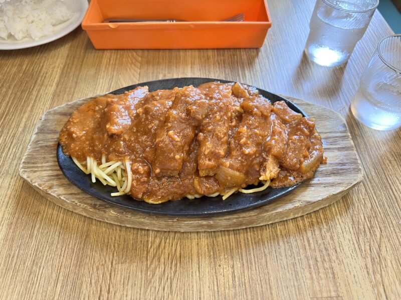 釧路の名物として知られる「スパカツ」を味わうなら、老舗の人気店「レストラン泉屋 総本店」は外せません。ジュージューと音を立てる鉄板の上に、たっぷりのミートソースとサクッと揚がったカツを乗せた迫力満点の一皿は、見た目にも食欲を刺激する釧路グルメの代表格。麺はやや太めでボリュームがあり、濃厚なソースとカツの旨みが絡み合う、クセになる味わいです。