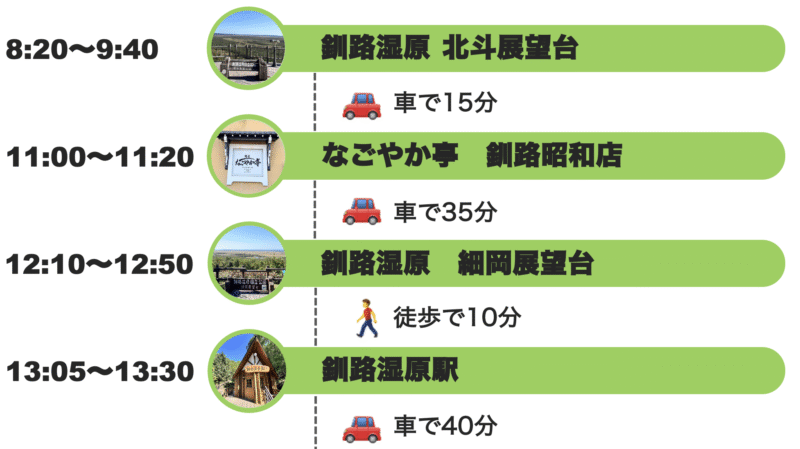 今日は釧路の絶景とグルメを満喫する1日旅に行くで〜!