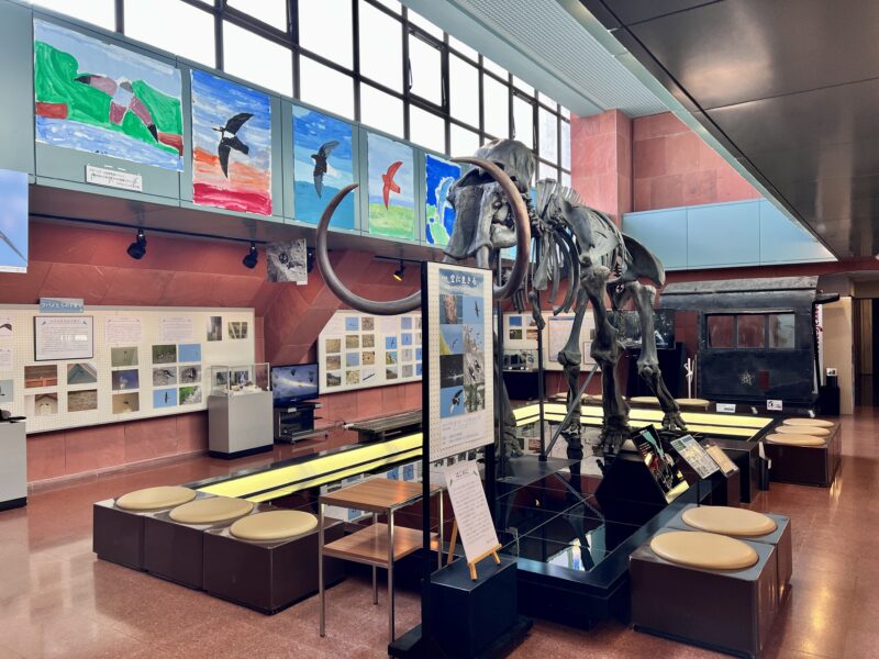 特に、マンモスの骨格標本は、印象に残る展示です。アイヌ文化に関する衣食住の民具や儀礼具も、約500点を超える資料で丁寧に紹介されています。