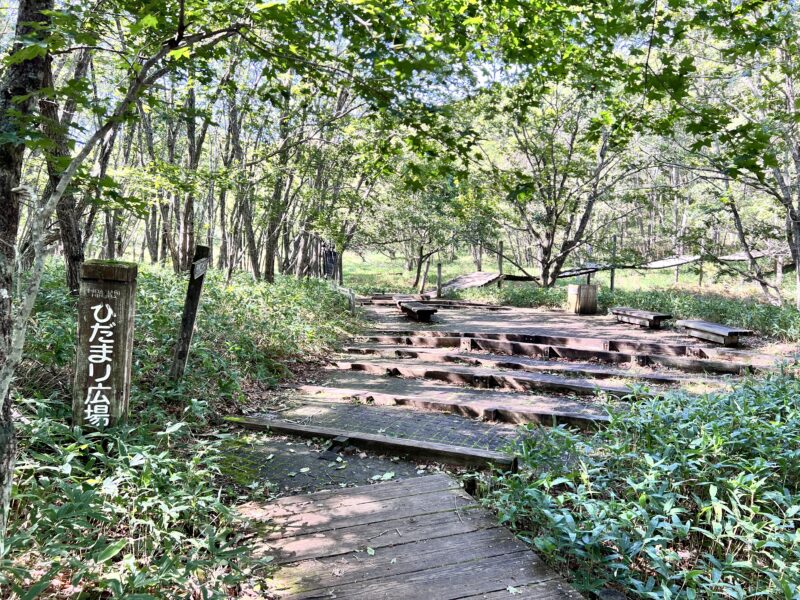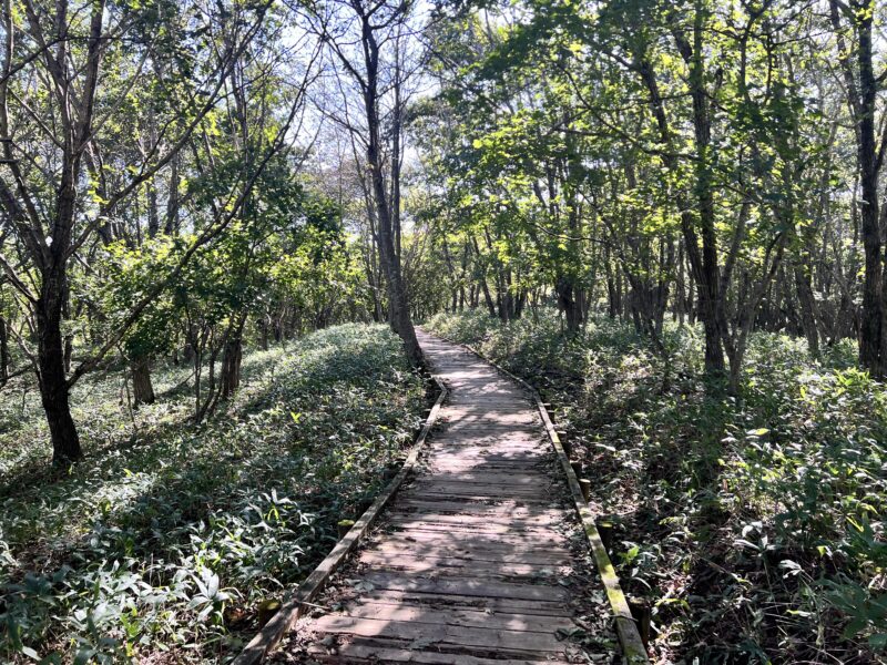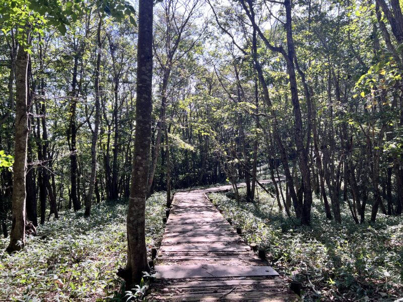 この遊歩道を歩いていくと、森を抜け、湿原を見渡せる北斗展望台園地へと続きます。歩きながら聞こえるのは風の音と鳥の声だけすごく気持ちがいいです。