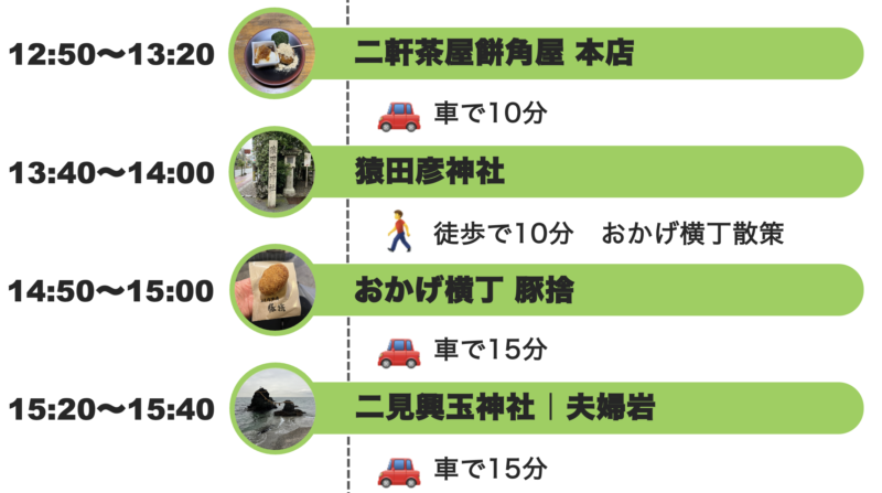 今回ご紹介したのは、“みちひらきの神様”を巡る三重の開運ドライブコース。椿大神社 をはじめ、猿田彦神社、二見興玉神社 と、人生の道を切り開いてくれる神社を巡る特別な1日となりました。