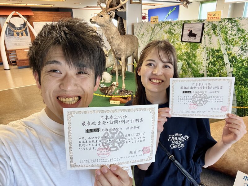 日本最東端の到達証明書を無料でもらえた!!北、南、西。全部制覇したいな。