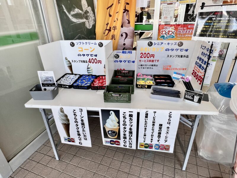 店頭には、購入用のタグを取ってスタッフに渡すスタイルのようで、スムーズなオペレーションが印象的でした。 また、このソフトクリームは4月下旬から10月下旬の半年限定での販売とされ、夏場に訪れるならぜひチェックしたいスイーツです。