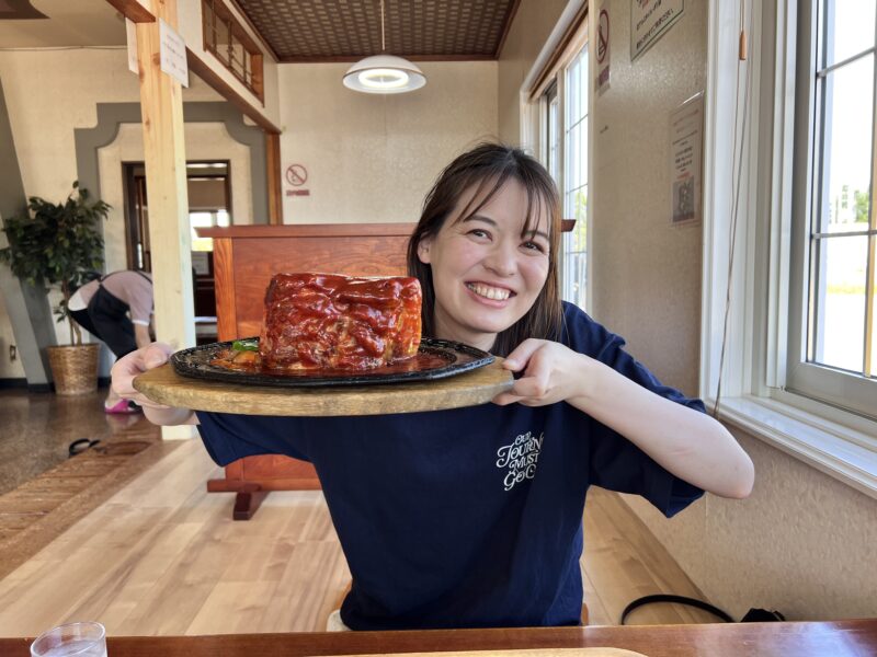 広大な酪農地帯をドライブしていると、ぽつんと現れる洋食レストラン「ロマン」。噂の700gポークチャップは、「焼き上がりまで50分〜」との注意書きもあり、その量と手間暇に期待が高まります。