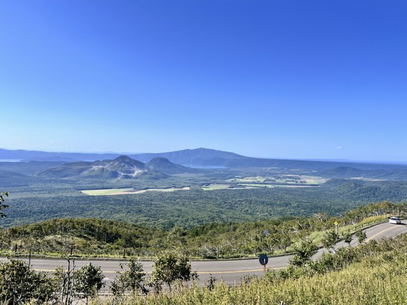 摩周湖第三展望台からは、摩周湖だけでなく、周辺の自然も楽しむことができます。湖を背にして反対側には、硫黄山や藻琴山、屈斜路湖などの景色が広がります。