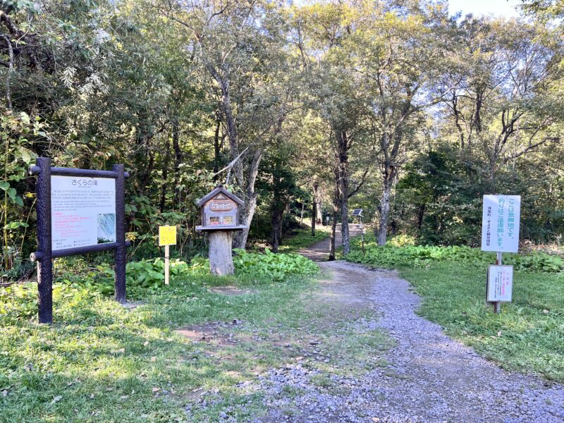 神の子池へはさくらの滝から車で約25分。林道を進むと駐車場があり、そこから整備された木道を歩いて池までアクセスできます。池の周囲は散策路が整えられており、ゆっくりと自然を感じながら歩くことが可能です。