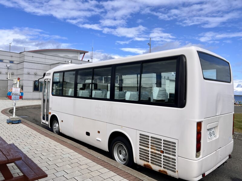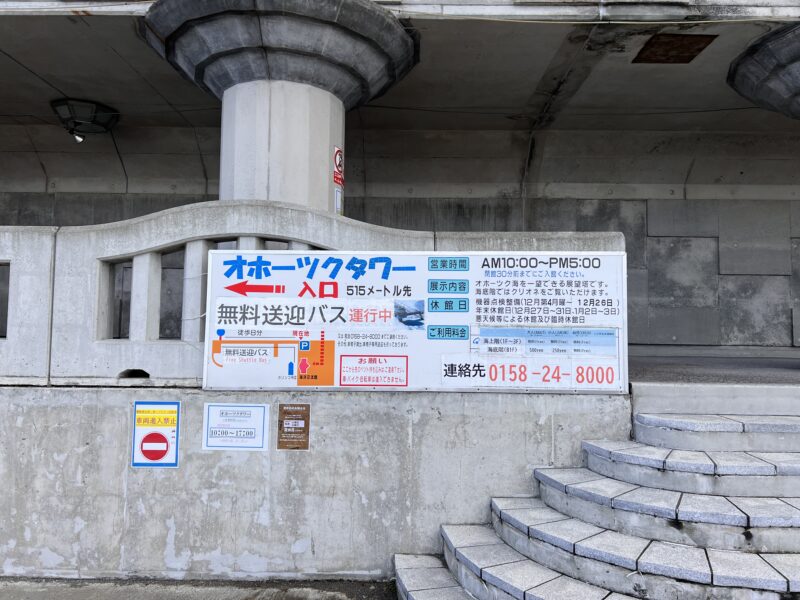 私もこの無料送迎バスを利用しました。バスは駐車場のある海洋交流館の隣から出発し、オホーツクタワーまでを結んでいます。