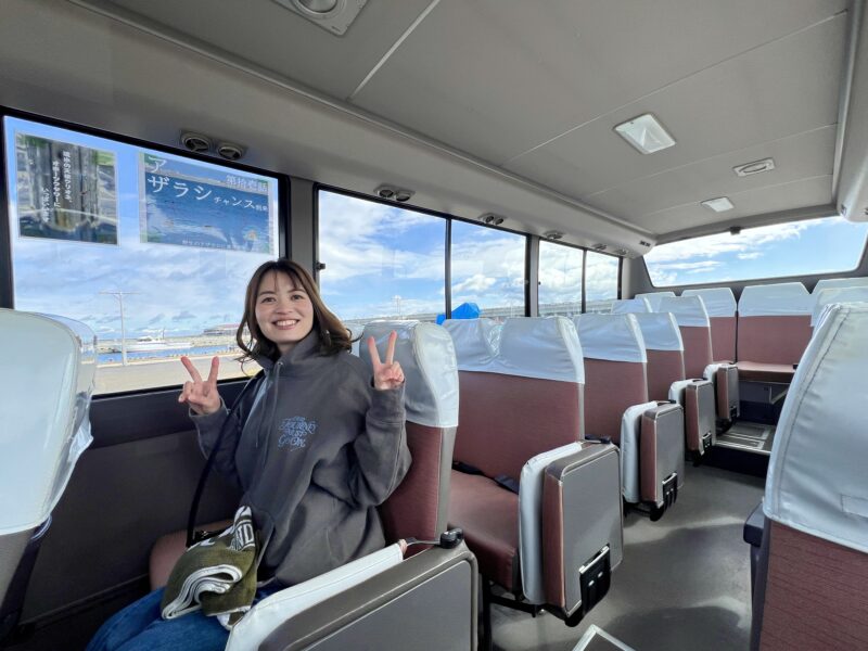 乗車時間はおよそ5分ほどで、車窓からは港の風景やオホーツク海が広がり、ちょっとしたミニ観光気分が味わえます。