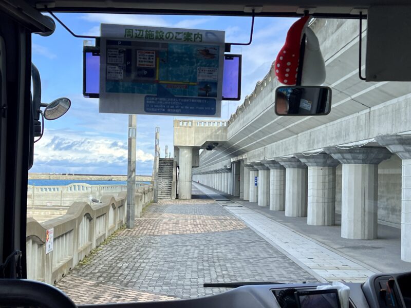 海洋交流館の隣にバス停があります。