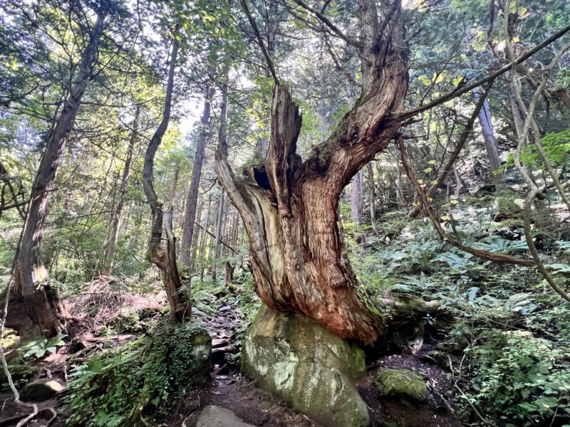 足元は苔や枝で滑りやすいため、しっかりした靴が必須。雨上がりだと特に要注意です。