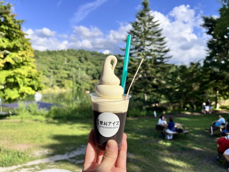 長野県・道の駅「ビーナスライン蓼科湖」に佇む小さなカフェ「喫茶 蓼科アイス」。湖畔の自然とほどよい静けさに包まれながら、私たちはここで「寒天ゼリーフロート」をいただきました。
