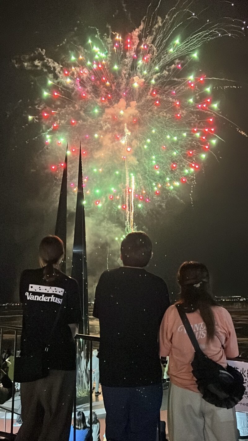 居酒屋から歩いてすぐのところで花火を見ることができました。