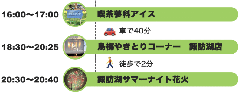 今回の長野1日観光では、諏訪湖や立石公園の絶景を楽しみながらのんびりと過ごし、蓼科大滝で自然を感じ、長門牧場でソフトクリームを味わいました。ビーナスラインを走り抜け、霧ヶ峰リフトからの眺めに感動し、湖畔のカフェやグルメを堪能。夜は諏訪湖のサマーナイト花火で旅を締めくくり、まさに自然・食・感動が詰まった充実の1日となりました。長野観光を計画されている方には、ぜひ参考にしていただきたいモデルコースです。
